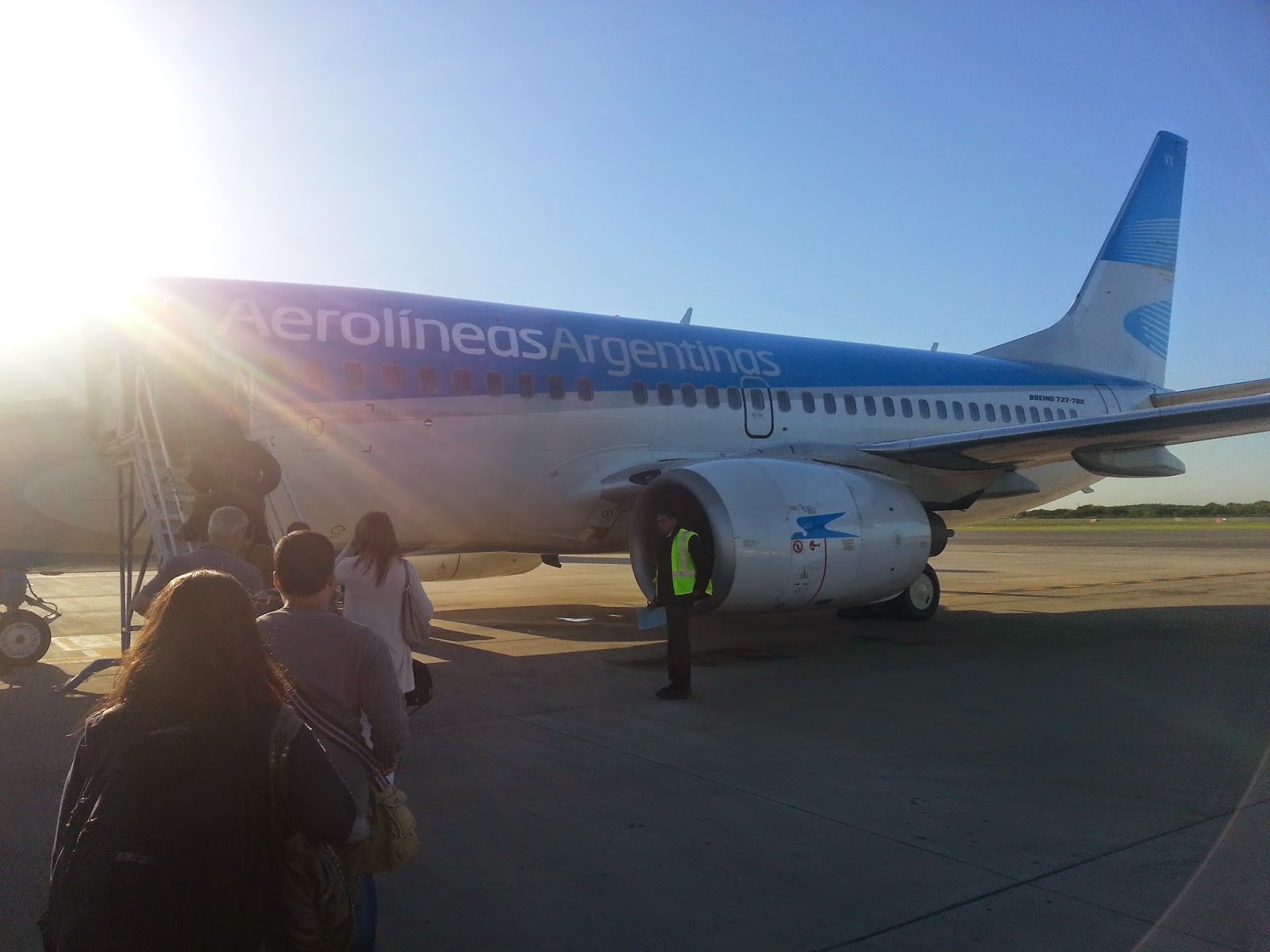 Iniciaron el embarque, obviamente en posicion remota ya que no hay mangas para los vuelos de cabotaje que salen de Ezeiza.